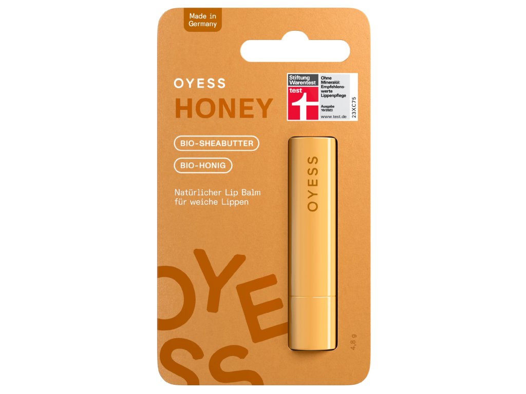 OYESS je moderní německá značka přírodní kosmetiky, která spojuje čisté složení, udržitelnost a stylový design. Její balzámy na rty jsou vytvořeny ze 100 % ingrediencí přírodního původu, přičemž více než 95 % pochází z certifikovaného ekologického zemědělství. Bohatá receptura s BIO bambuckým máslem, BIO jojobovým olejem či BIO včelím voskem poskytuje rtům intenzivní výživu, hydrataci a dlouhotrvající komfort. Produkty nesou prestižní certifikaci COSMOS Organic / Ecocert a zároveň i označení Leaping Bunny, které potvrzuje, že jsou zcela cruelty-free. Značka klade důraz také na ekologii, vyrábí CO₂-neutrálně v Německu, používá obaly z recyklovaných materiálů a vyhýbá se minerálním olejům, mikroplastům či zbytečné chemii. OYESS tak představuje moderní, čistou a odpovědnou péči, která je šetrná nejen k rtům, ale i k planetě.