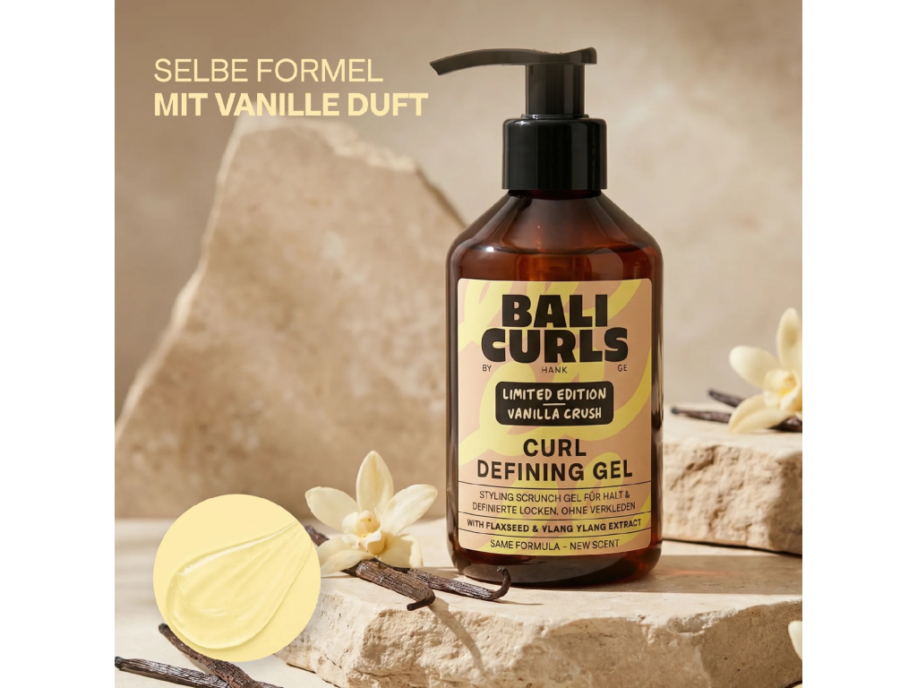 Bali Curls gel se lněným semínkem a ylang ylang nyní v limitované edici s teplou, krémovou vůní vanilky - stejná skvělá definice, nový smyslový zážitek. Fixuje a perfektně definuje vaše kadeře. Nelepí a účinně krotí krepatění. Značka nabízí komplexní řešení pro vaše vlnité či kudrnaté vlasy, a to bez zbytečné chemie, parabenů, sulfátů, silikonů či alkoholu. Gel je vhodný i pro jemné vlasy, nezatěžuje, vlny krásně lehce ale zároveň precizně definuje.