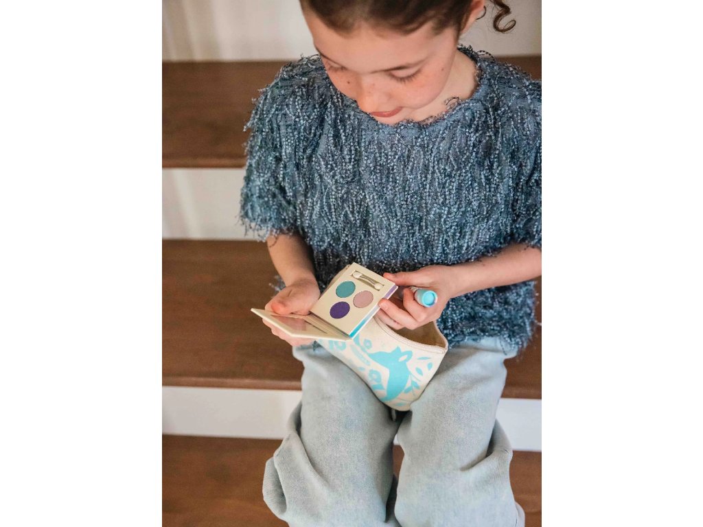 Namaki Blue Fox set obsahuje mix svěžesti a kouzla: paletku tří barevných očních stínů a hydratační růžový třpytivý lesk na rty, oba certifikované jako organické, pro jemnou aplikaci make-upu. Praktický a ekologicky odpovědný – taštička je vyrobena z organické bavlny a zdobena roztomilou sítotiskovou ilustrací. Nápad na dárek, který je stejně krásný jako odpovědný!