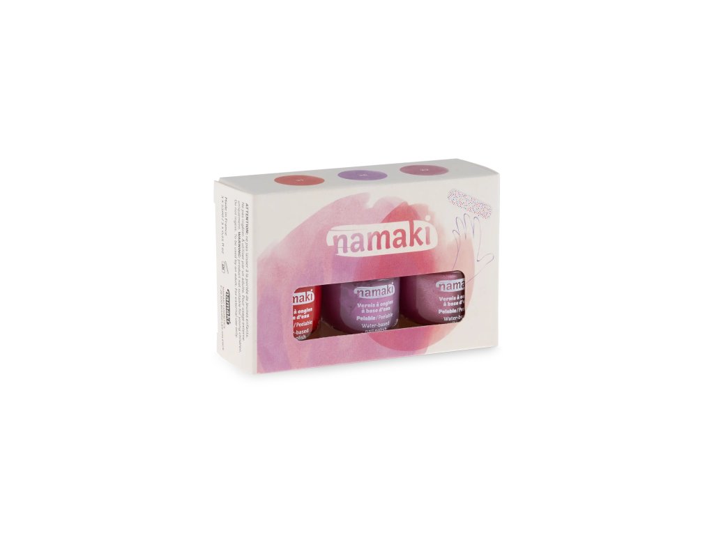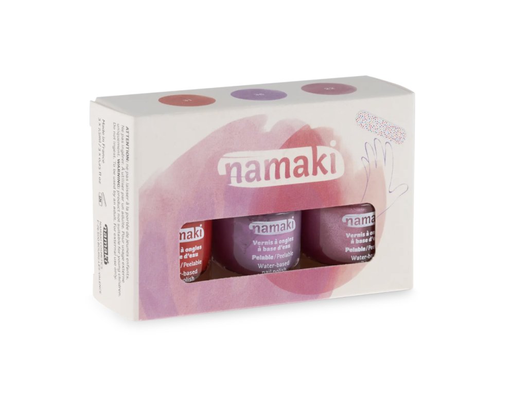 Laky Namaki jsou perfektní alternativou dětských laků se šetrným složením. Odstraňují se sloupnutím. Odstíny Višňová, Fialková a Třpytivě růžová vás přenesou do tajné zahrady, kde růže nikdy neuvadnou – a kde se můžete cítit jako okouzlující princezna.
