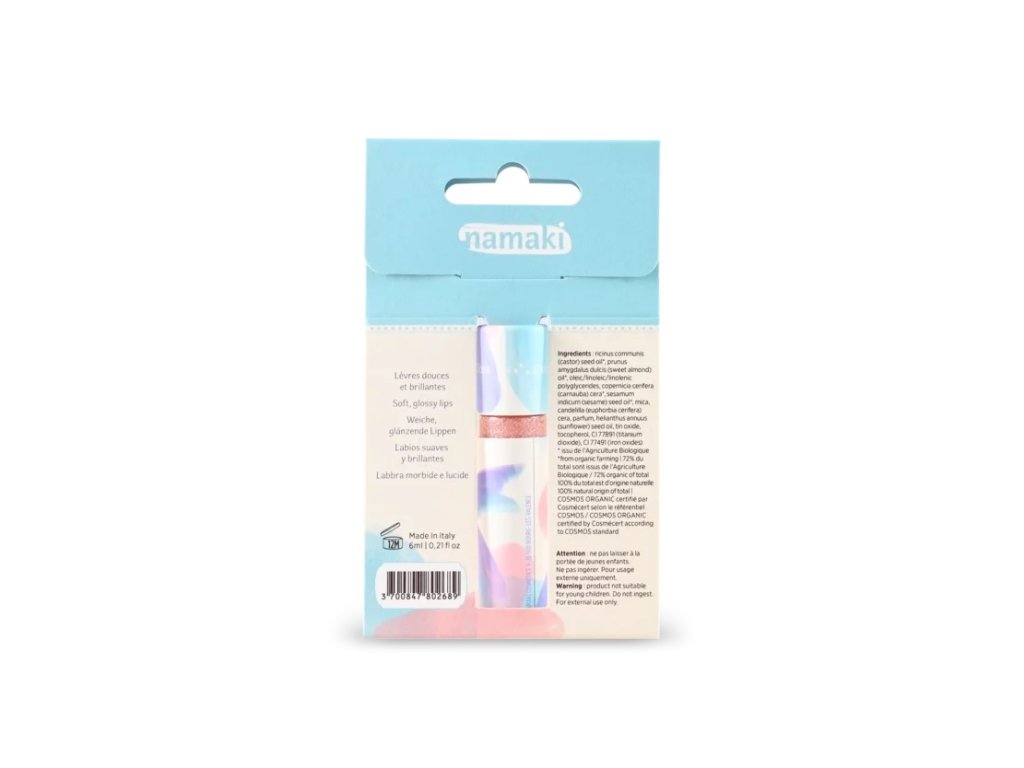 Lesk na rty Namaki je péčí a jemná barva v jednom. Obohacený o organické oleje, náš lesk zanechá rty jemné a chráněné a zároveň jim dodá jemný růžový odstín. Snadné použití: jemná a měkká aplikace zvýrazní dětské rty. Šetrné k pokožce: veganské složení s ricinovým, sezamovým a mandlovým olejem, dermatologicky testováno, certifikace Cosmos Organic – bezpečné použití. Ekologické: obal je ekologicky navržený a recyklovatelný. A jako bonus: hydratuje a chrání horní vrstvy pokožky.