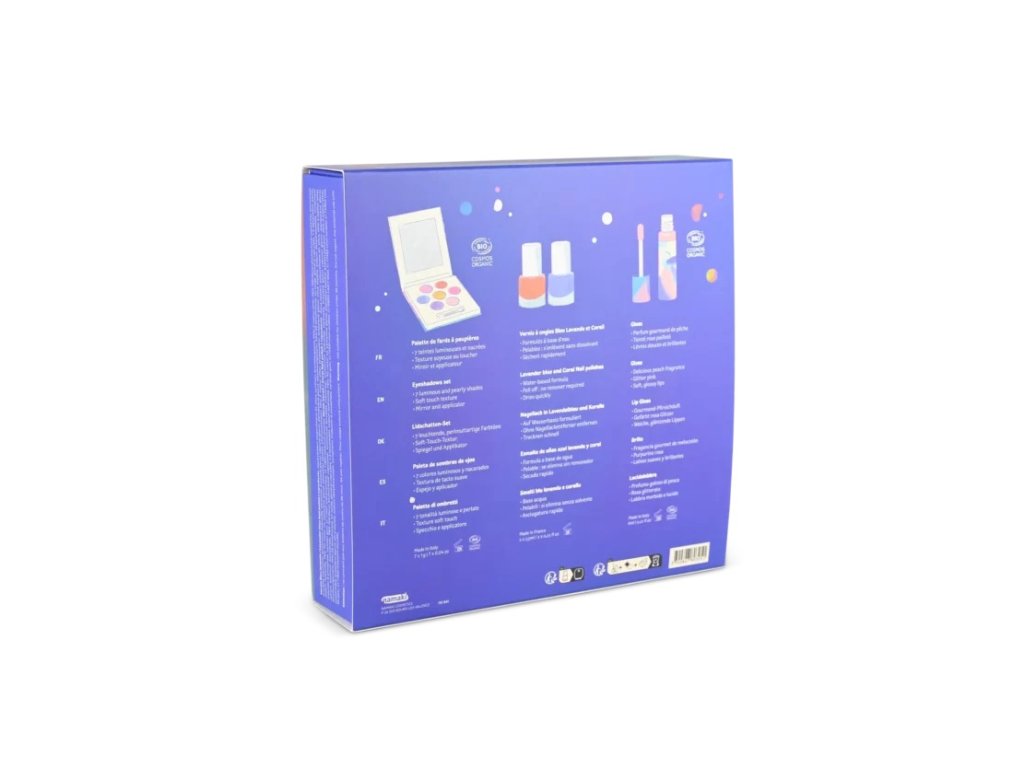 Namaki set Moonlight inspirovaným barvami soumraku. Tento set spojuje nezbytné produkty z make-up řady pro vytvoření třpytivých a elegantních looků: paletku 7 perleťových harmonických očních stínů, třpytivý růžový lesk na rty s jemnou broskvovou vůní a dva vodní laky na nehty v levandulové modré a korálové barvě, které můžete podle přání střídat nebo kombinovat.