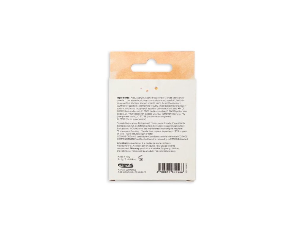 Ponořte se do kouzla podzimu s paletou Namaki! Představte si hraní v padlém listí nebo sbírání jablek v sadu. Naše oční stíny v podzimních barvách vás přenesou do magického světa. Míchejte je, vrstvěte a vytvářejte barevné přechody, které odráží nádheru této sezóny. Příjemná aplikace: oboustranný aplikátor zajišťuje jemný pocit na víčkách. Snadné odstranění: jednoduše mýdlem a vodou. Šetrné k pokožce: přírodní složení, dermatologicky testováno, certifikace Cosmos Organic – použití bez rizika. Zábavné a praktické: paleta obsahuje zrcátko a snadno se přenáší kamkoli. Ekologické: obal je ekologicky navržený a recyklovatelný. Objevte kouzlo přírody a nechte své oči zazářit s Namaki!