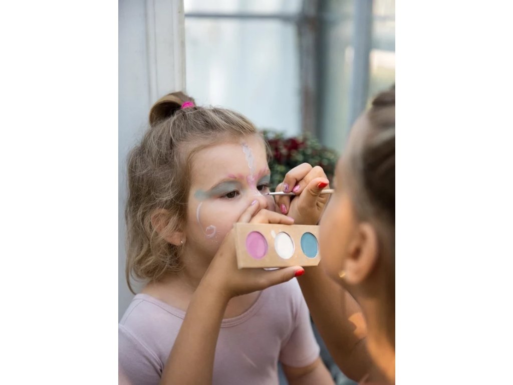 Namaki set 3 šetrných barev na obličej se štetcem v motivu princezny či jednorožce. Snadné odstranění, certifikace COSMOS.