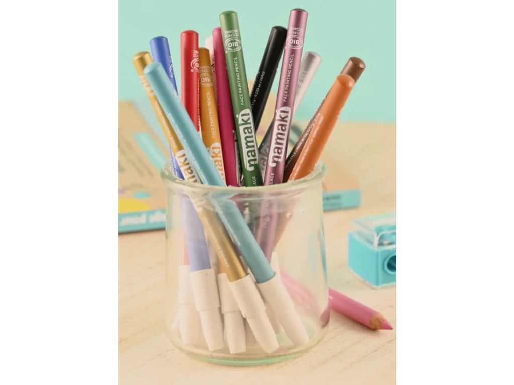 Namaki tenké make-up tužky jsou perfektními pomocníky pro přesné linie. Jejich měkký a ultrajemný hrot zvýrazní každý detail a dodá vašemu make-upu finální dotek. Tyto organicky certifikované tužky se rychle stanou nepostradatelnými! Snadná aplikace: měkká textura hrotu s organickým kokosovým olejem zaručuje přesné, nerozmazávající se linie. Šetrné ke zdraví: certifikace Cosmos Organic a složení z nejkvalitnějších přírodních ingrediencí. Make-up tužky jsou dermatologicky testované, což zaručuje bezstarostné používání. Bezpečnost: hračky v souladu s normou CE pro zcela bezpečné použití. Snadné odstranění pomocí mýdla a vody. Ekologický závazek: ekologicky navržené, recyklovatelné balení, víčka vyrobená z recyklovaného plastu. S tužkami lze malovat i klasicky na papír.