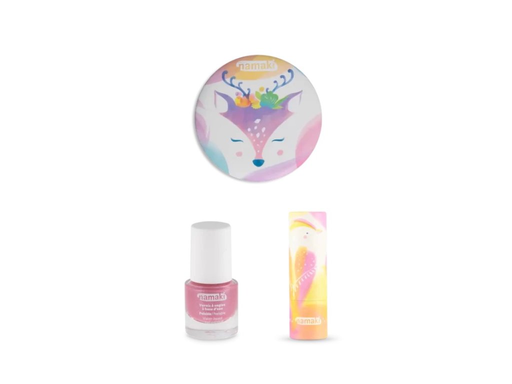 Namaki set tří produktů Chickadee (lak na nehty, balzám na rty a zrcátko)