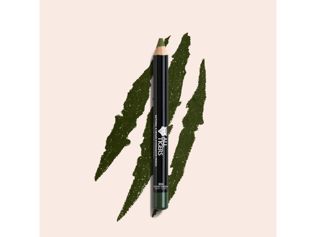 All Tigers tužka a stíny v jednom v krásné smyslné olivově zelené. Můžete ji aplikovat jako stíny nebo jako tužku. Perfektně drží. Obsahuje organický kokosový olej, vitamín E, karnaubský vosk a rýžový extrakt. Veganská. Dřevo je z udržitelně obhospodařovaných lesů zdobené lakem na vodní bázi. Víčko je z bio plastu.