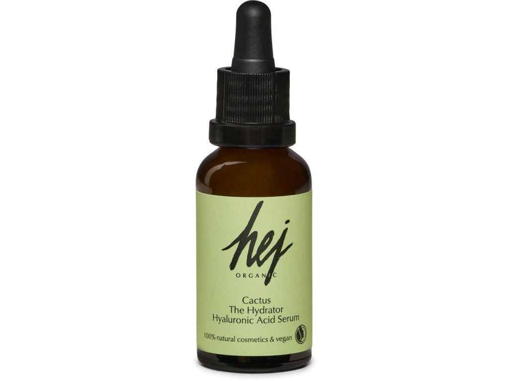Hej Organic kaktusové sérum s kyselinou hyaluronovou pro svěží a zářivou pleť. 2% kyselina hyaluronová dodává pleti intenzivní hydrataci a působí do spodních vrstev pokožky. Díky opunciové vodě a extraktu z grepu má také antioxidační účinky. Skvalan a vitamín E zase pleť chrání před předčasným stárnutím a vnějšími vlivy jako jsou třeba sluneční paprsky. Velmi lehká textura se rychle vstřebává. Po použití je pokožka hladká, nelepí. Sérum je vhodné pro všechny typy pleti. Zelené produkty Hej Organic obsahují olej z opuncie (kaktusu), který je jedním z nejvzácnějších a nejluxusnějších přírodních olejů, které se v kosmetice používají.